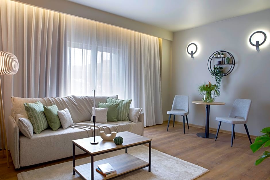 The air-conditioned suite has 1 bedroom and 1 bathroom with a shower and a hairdryer. Boasting a balcony with city views, this suite also offers a tea and coffee maker and a flat-screen TV. The unit has 2 beds.
